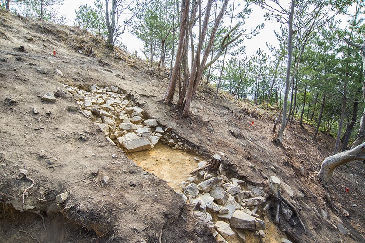 葺石で飾り立てる